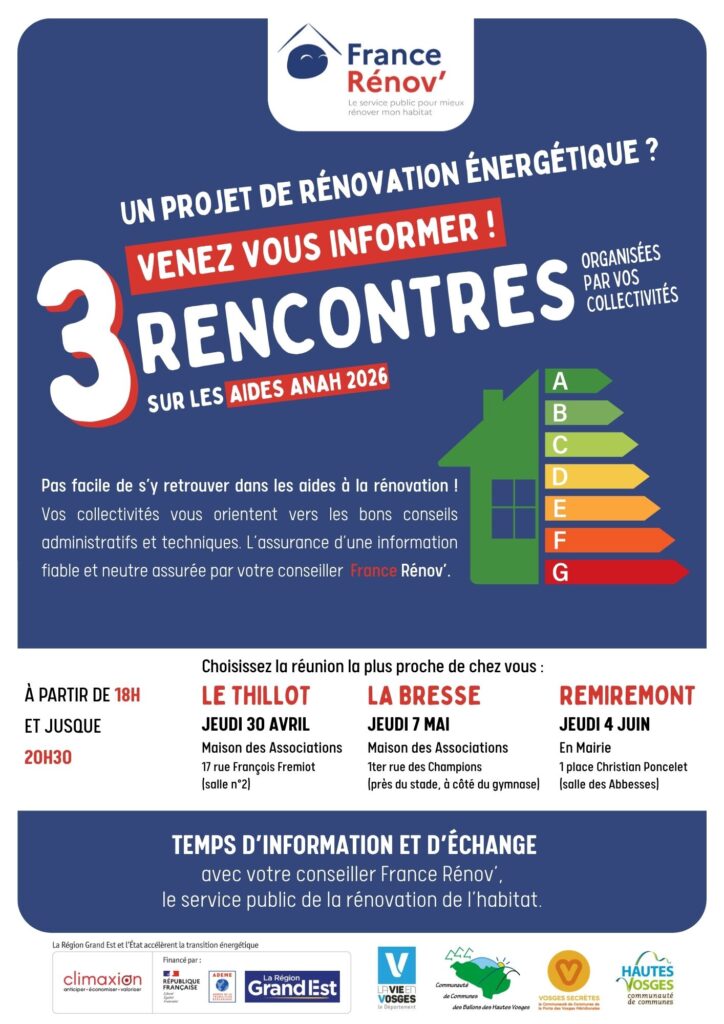 👉 Pour vous accompagner, vos collectivités et France Rénov’ vous proposent des réunions d’information gratuites et ouvertes à tous.
